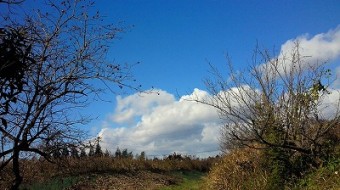 向かって左側が柿の木で右側が雑木です、よーく見てください柿の木と雑木の枝と枝との間隔があと少しだと思いませんか^^