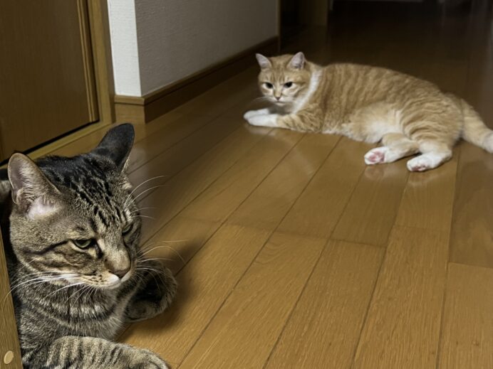 (リクちゃん🐈スズちゃん🐈今日の癒しの一コマ。。)
