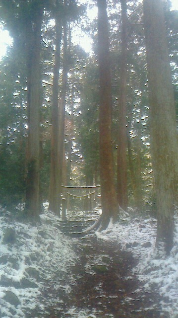息が上がったころ神社への参道までたどり着いてそこからは徒歩。鳥居をくぐって間もなくその先は