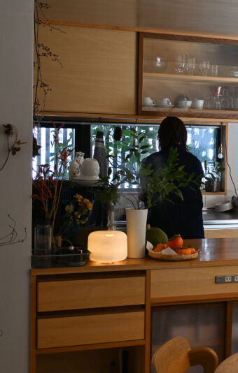 無垢の床や造作家具たちは、新築当時よりつやが出て、だんだんと飴色に近づいてきた様子。