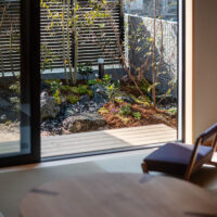 暮らしの真ん中に設けたキッチンは、家族の様子を伺えて、庭の景色もたのしめます。