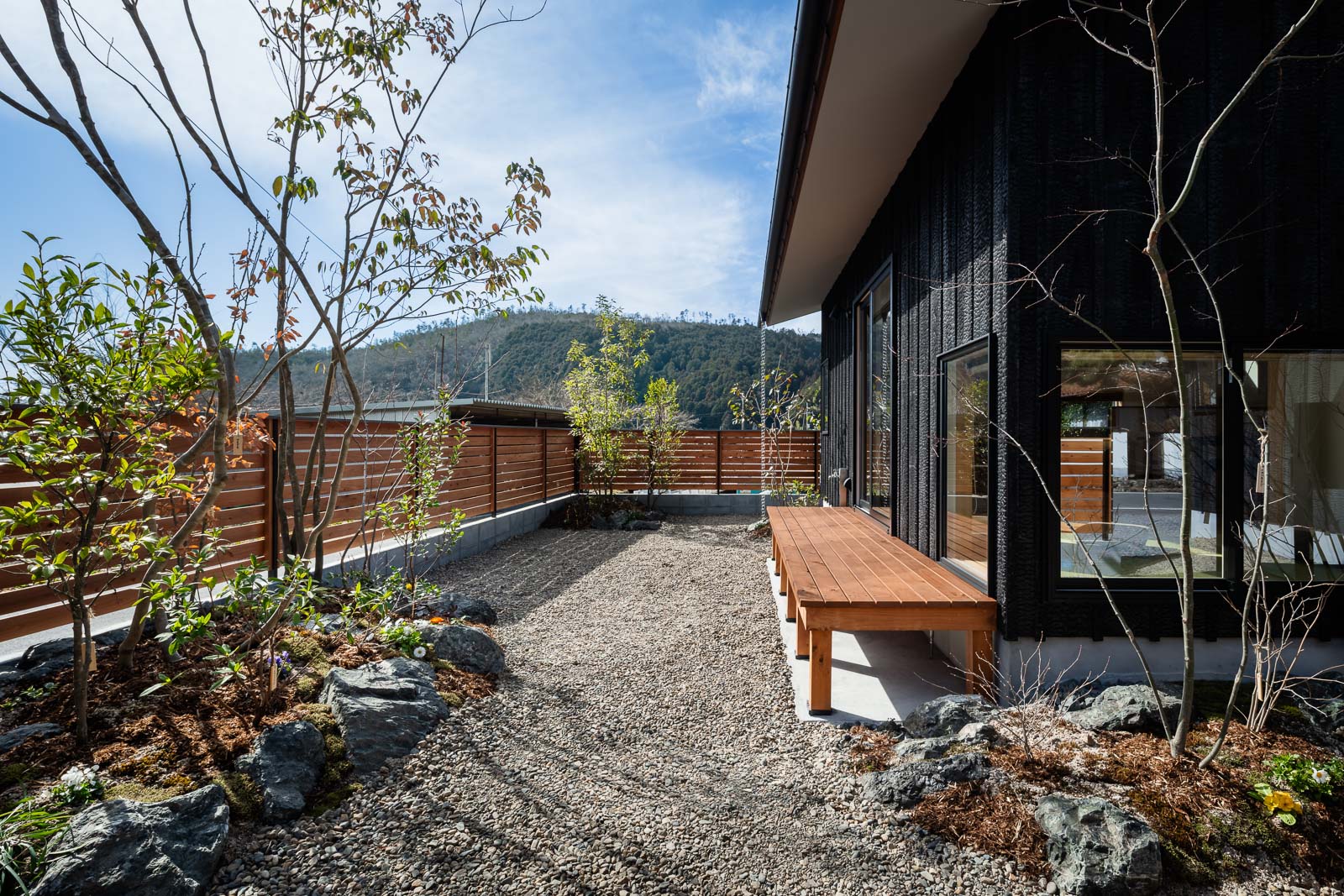 焼杉板を身にまとう優しい風合いの平屋ができました。