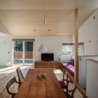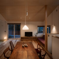 テクニカル: スタディコーナー, 全館空調, 平屋, 焼杉板(外壁), 造作ソファー