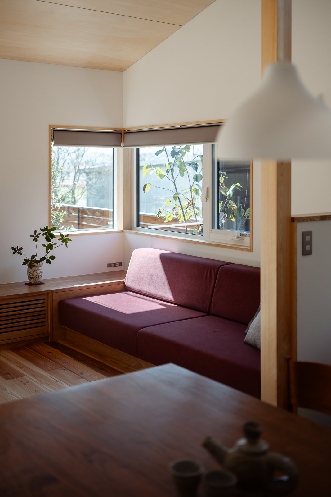 目線を窓の外にのばすと、庭の木々たちが四季とやわらかな陽光を運んでくれ、