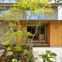 庭で遊んだり、ご飯を食べたりしたいという要望も強い家族だったので、大きく開く窓から外へつながり、暮らしの中に庭を取り込めるように外のベンチや土間のスペースを工夫しています。季節を感じることができる木々たちが部屋の中からも感じることができるように木々や草花を配置しています。「くゆ」の由来は座るときに膝の形がひらがなの「く」になることと、ご家族のお家を愉しみたいという気持ちの「愉-ゆ」を組み合わせて「くゆ」になりました。
