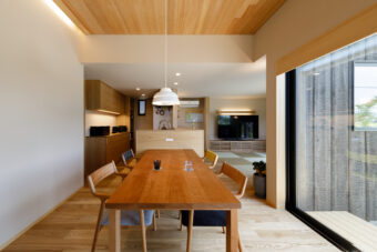 回遊できるひろびろキッチンや、全館空調、焼杉板など